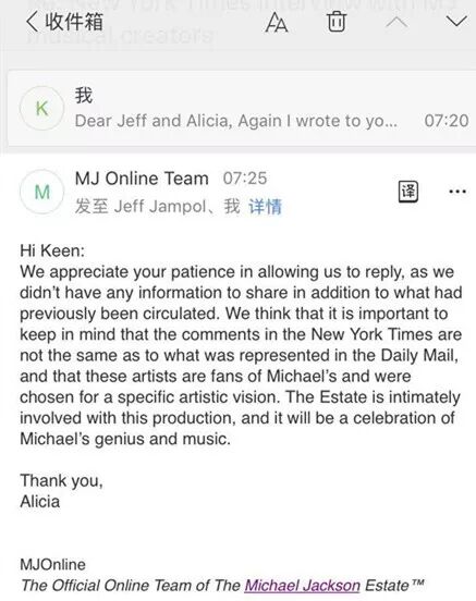 目前,粉丝纷纷要求遗产将这个编剧开除!毕竟作为MJ遗产的官方项目,怎么能容忍一个相信谎言,并对MJ进行错误方向解读的女人,来写这个百老汇音乐剧的灵魂?