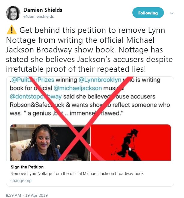 https://www.change.org/p/christopher-wheeldon-remove-lynn-nottage-from-the-official-michael-jackson-broadway-book
